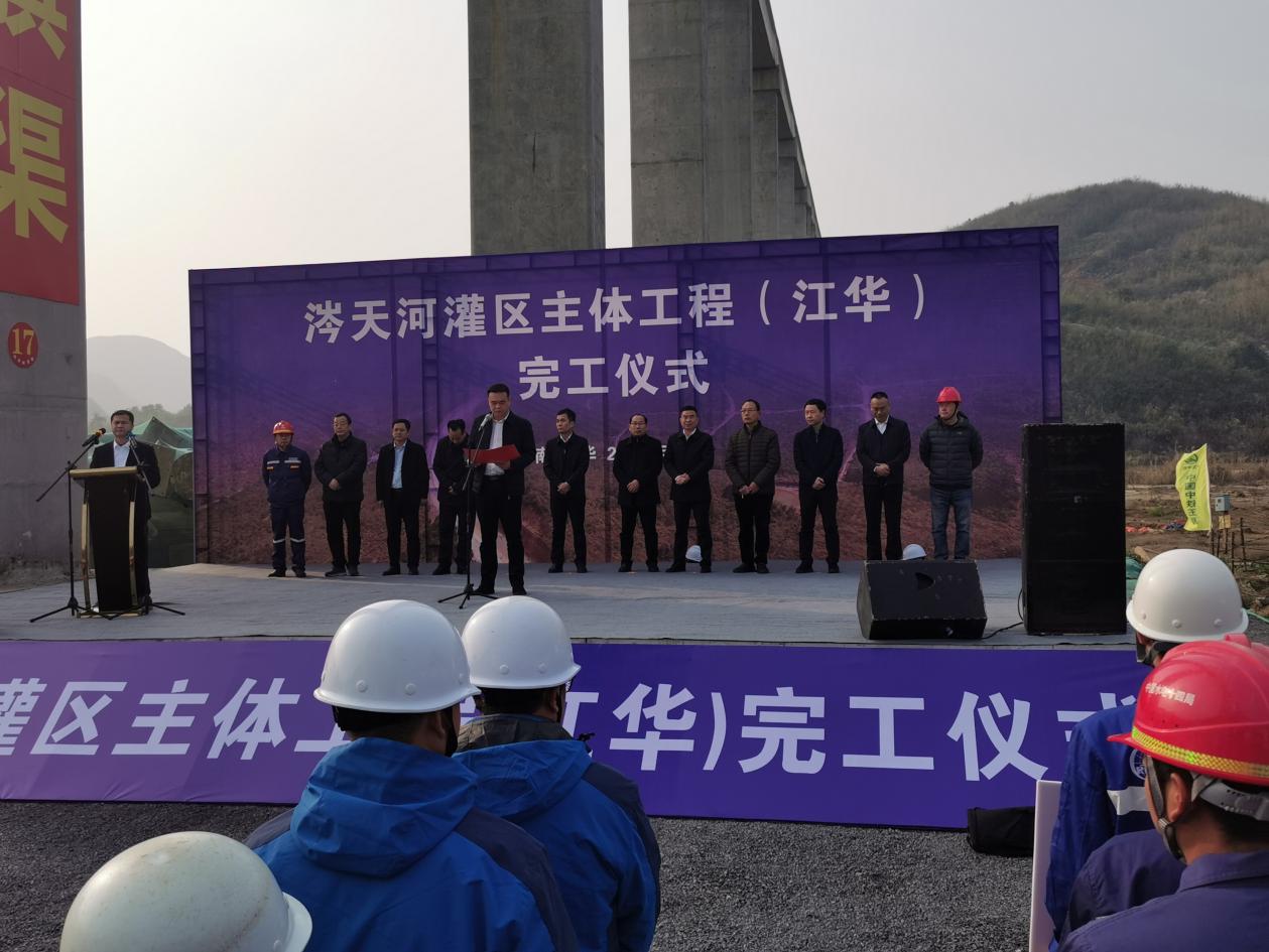 2月21日,永州市市政府、永州涔天河灌区工程建设有限责任公司组织召开涔天河灌区(江华片区)主体工程完工仪式。永州市人民政府副市长吴恢才、江华县长吴军臣、涔天河灌区公司董事长王振华、永州市水利局驻涔天河质监站、安监站、设计、监理、施工等参建单位代表参加。