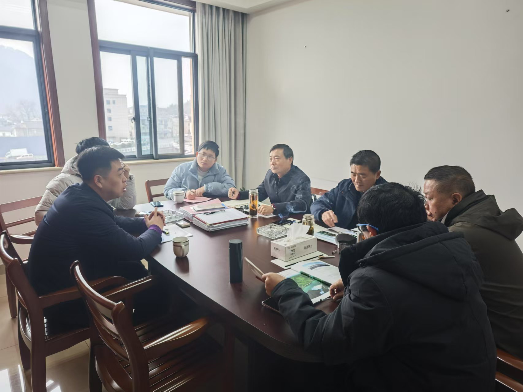 近日,黄山市歙县发改委党组书记张冬春带队赴双溪口水库开展交流参观活动,黄山市歙县投资促进局局长江焘、水利局局长金自立参加活动,杭州鲁润公司负责人陪同。