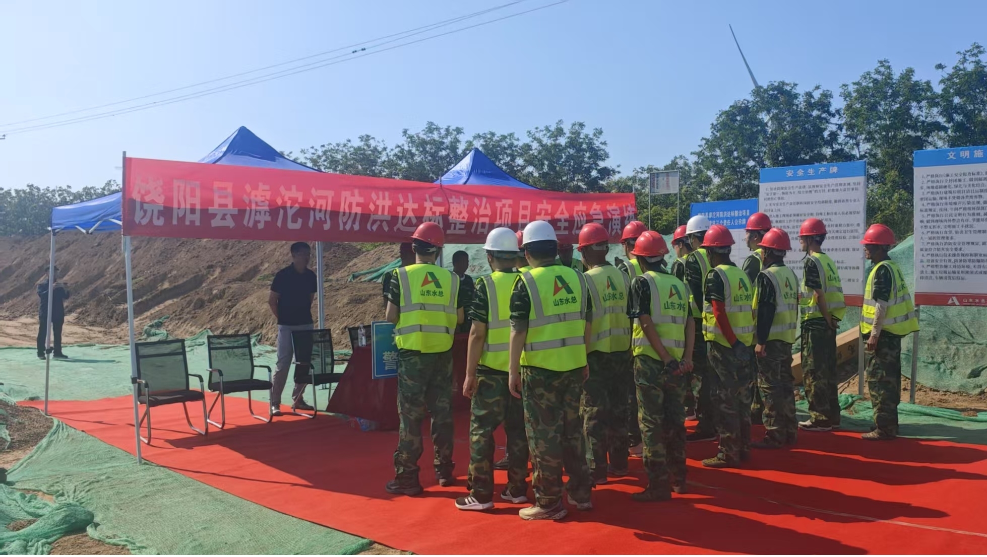 第二分公司河北饶阳县滹沱河防洪达标整治项目开展2025年度防汛、消防综合应急演练
